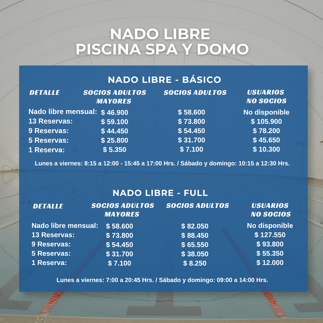 ¡Sumérgete en una experiencia deportiva única! Nuestras Piscina Spa y Piscina Domo están disponibles para clases de natación y nado libre. Revisa nuestros horarios y tarifas, y vive el deporte como nunca antes en instalaciones diseñadas para ti.